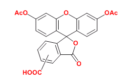 熒光素二乙酸酯(FDA)及其衍生物是非熒光分子,其擴散到細胞中并被細胞內(nèi)非特異性酯酶水解以產(chǎn)生熒光產(chǎn)物。熒光產(chǎn)物只能在具有完整細胞膜的細胞中積累;因此,具有滲漏膜的死細胞不會被染色。 FDA及其類似物(例如CDCFDA)的膜轉(zhuǎn)運和細胞內(nèi)水解的精確動力學(xué)與細胞功能有關(guān),因此FDA標記可用于通過流式細胞術(shù)或熒光顯微術(shù)監(jiān)測細胞。 FDA染料標記細胞的熒光強度在細胞系和菌株之間差異很大,可能是由于細胞內(nèi)酯酶活性的差異。CFDA是一種胺反應(yīng)性FDA衍生物,可用于制備各種FDA結(jié)合物。